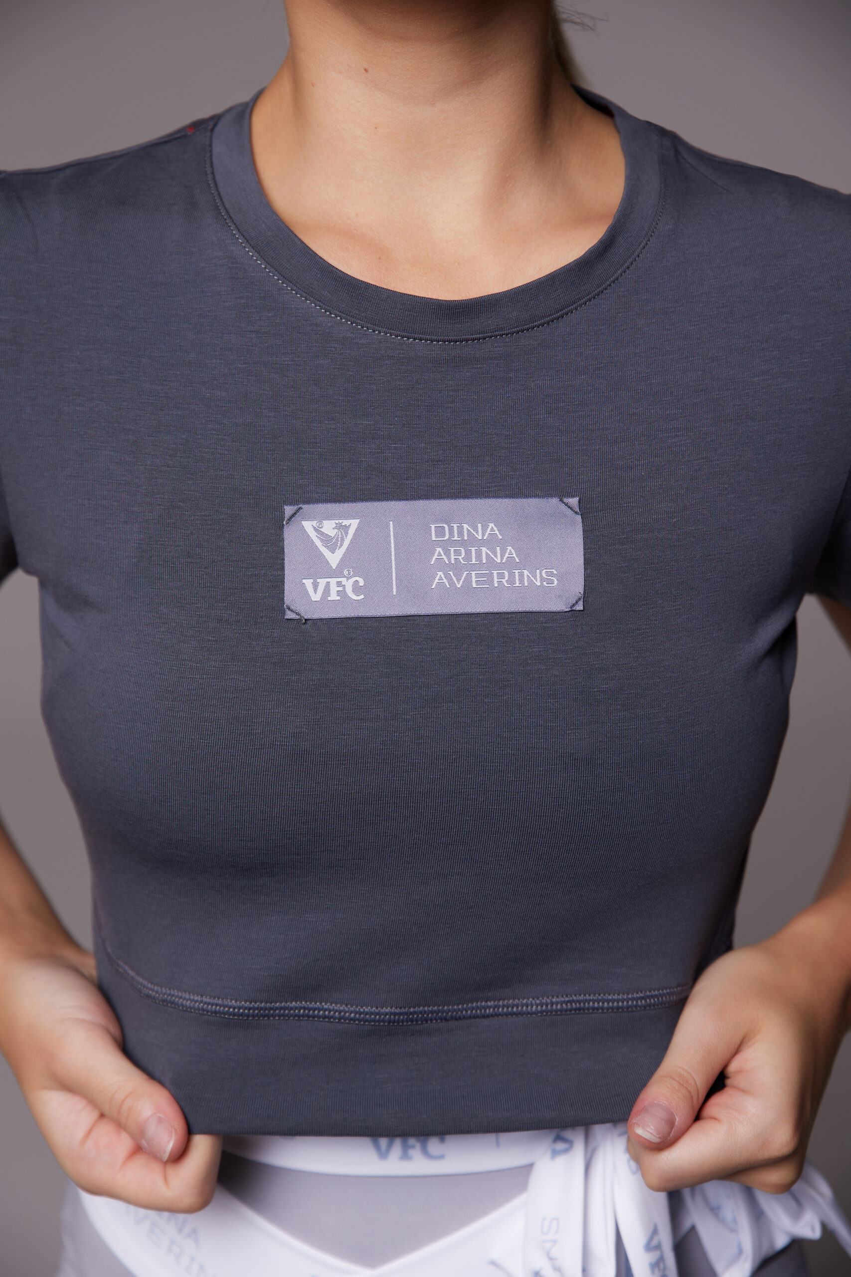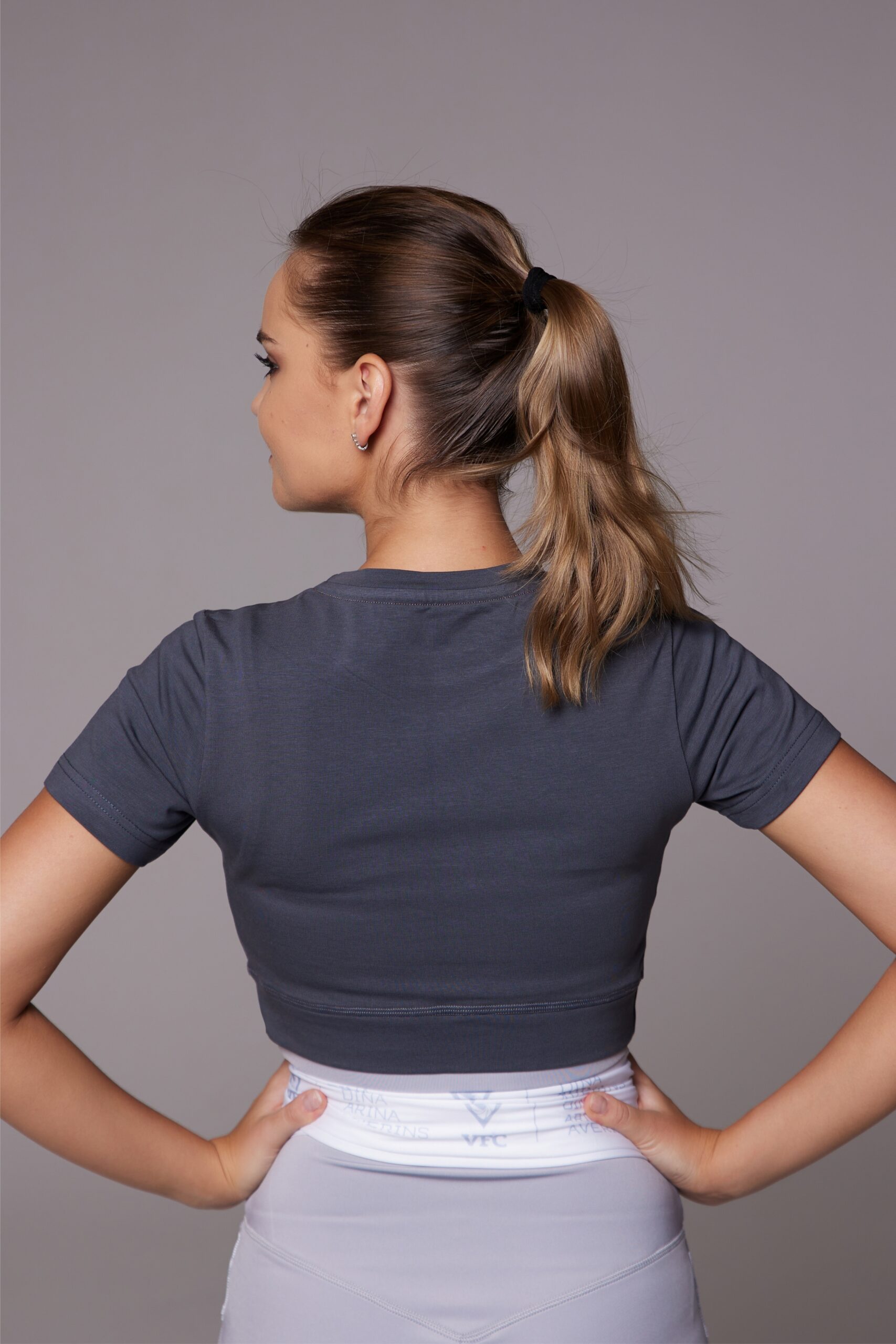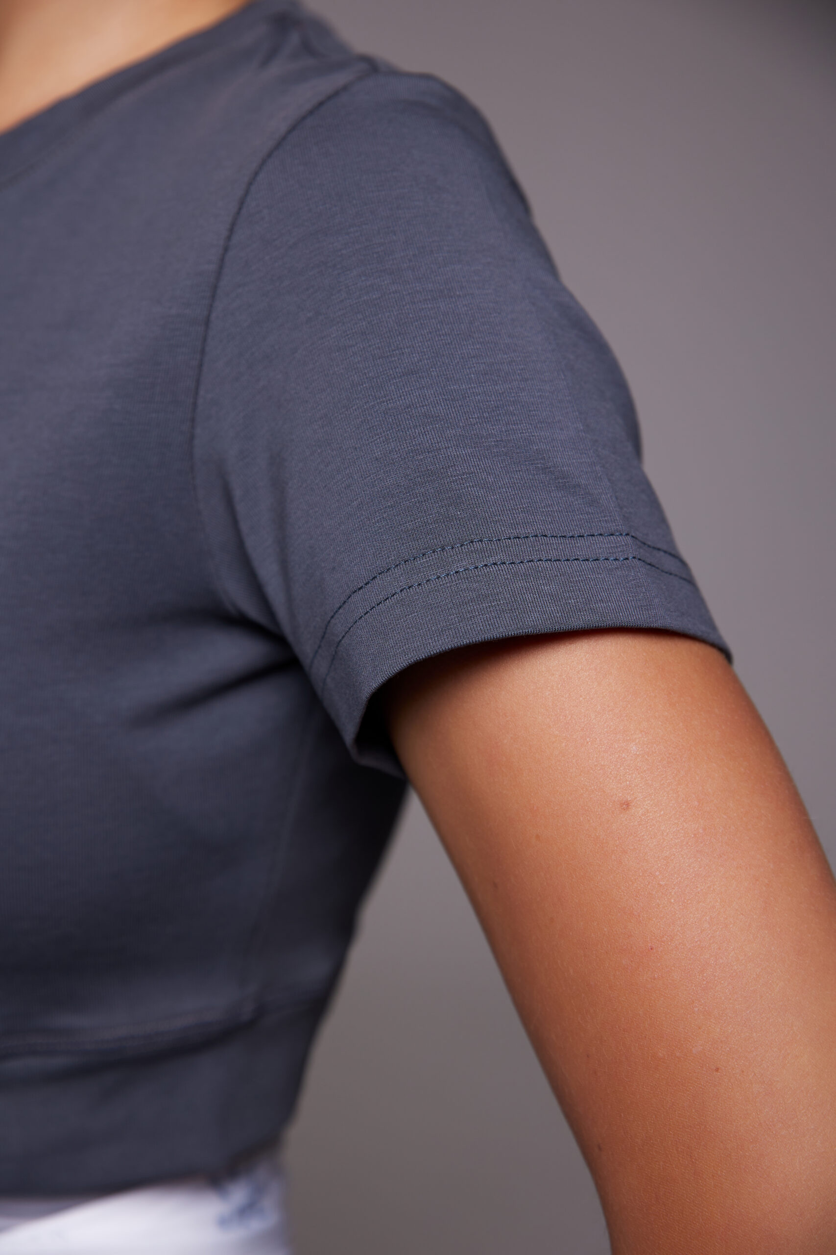 Базовый кроп-топ из хлопка с добавлением лайкры. Простота и удобство кроп-топа легко сможет заменить повседневную футболку. круглый вырез, средняя длина рукавов. Хорошо сочетается со спортивный низом. Нанесение жаккардовая вышивка. Прошит самым плотным швом для надежности.