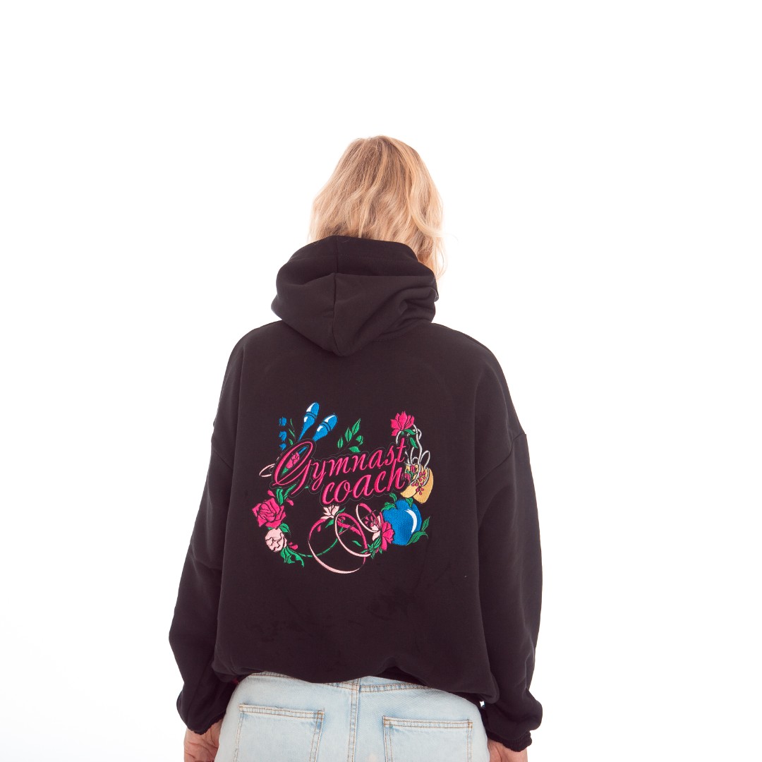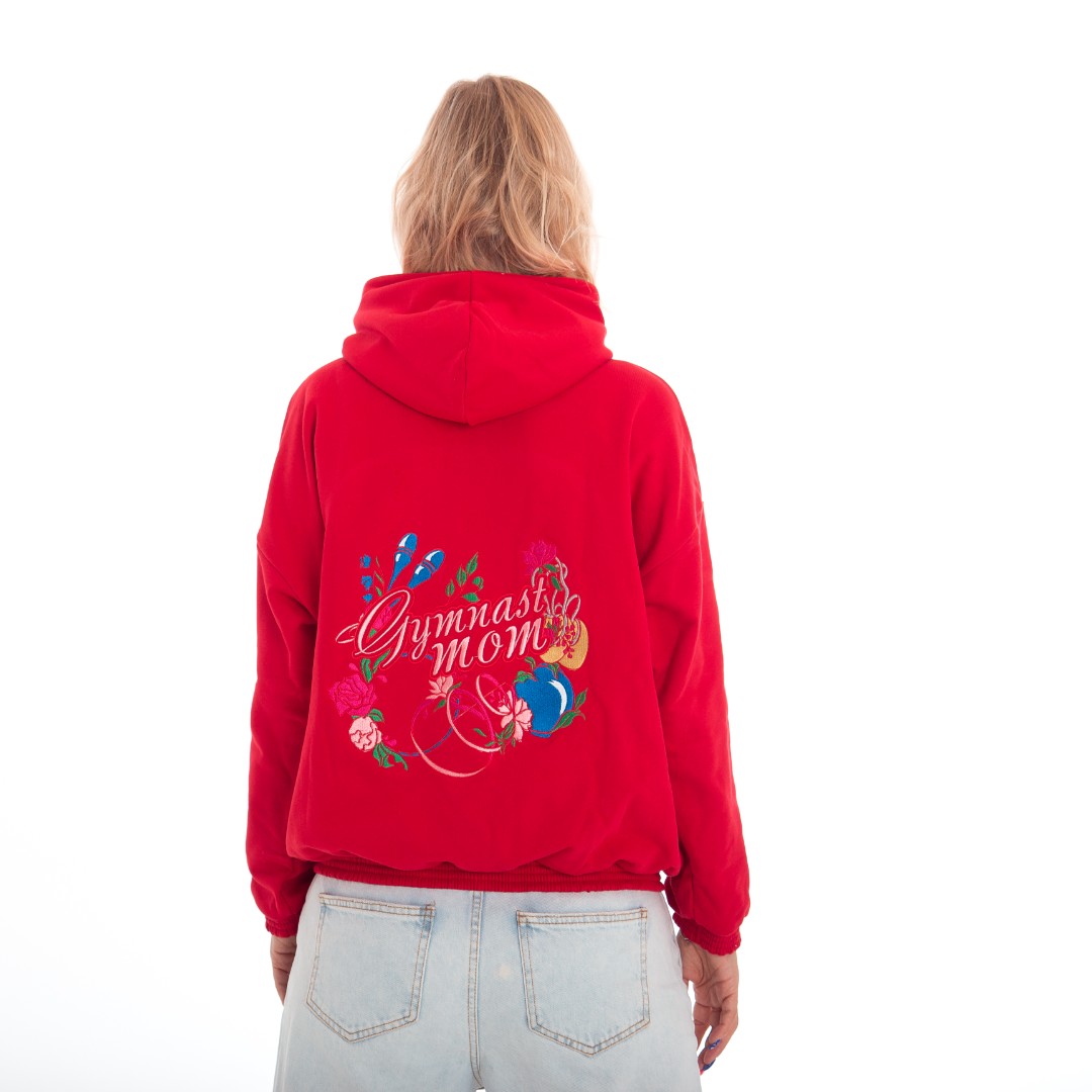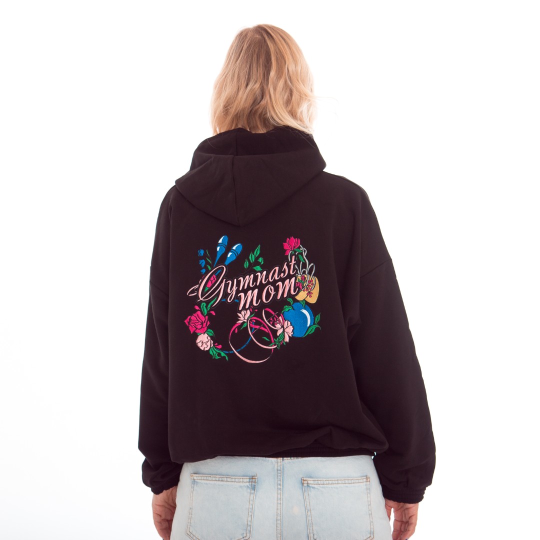 Толстовка – худи с вышивкой на спине “Gimnast coach” (“Gimnast mom”) отлично подойдет для повседневных прогулок, активного отдыха и физкультуры. Выполнена из мягкого и очень приятного к телу плотного трикотажа. Детали: – несъемный капюшон, рукава и край толстовки с трикотажными манжетами, без карманов.