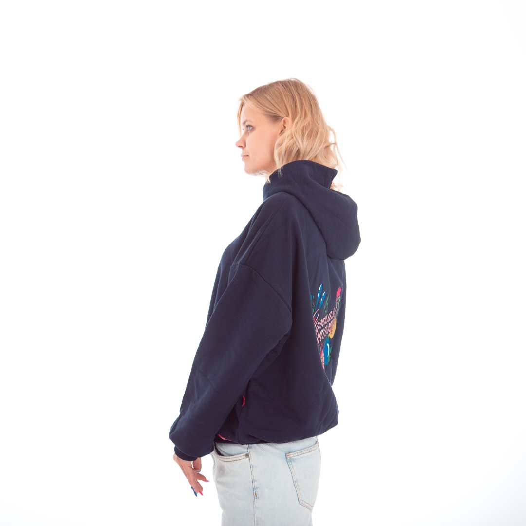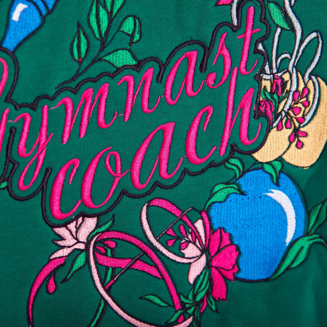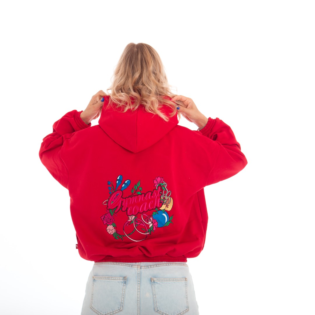Толстовка – худи с вышивкой на спине “Gimnast coach” (“Gimnast mom”) отлично подойдет для повседневных прогулок, активного отдыха и физкультуры. Выполнена из мягкого и очень приятного к телу плотного трикотажа. Детали: – несъемный капюшон, рукава и край толстовки с трикотажными манжетами, без карманов.