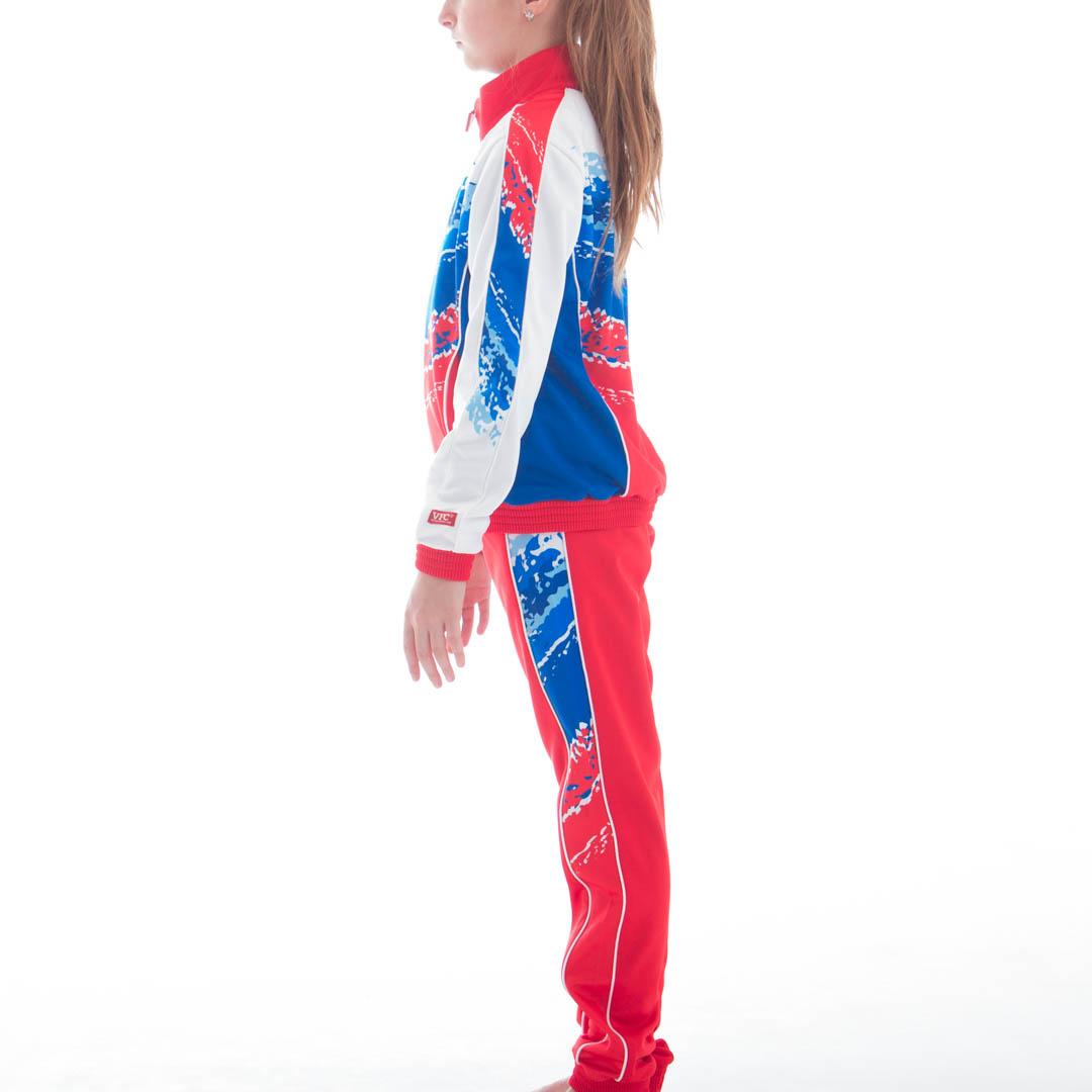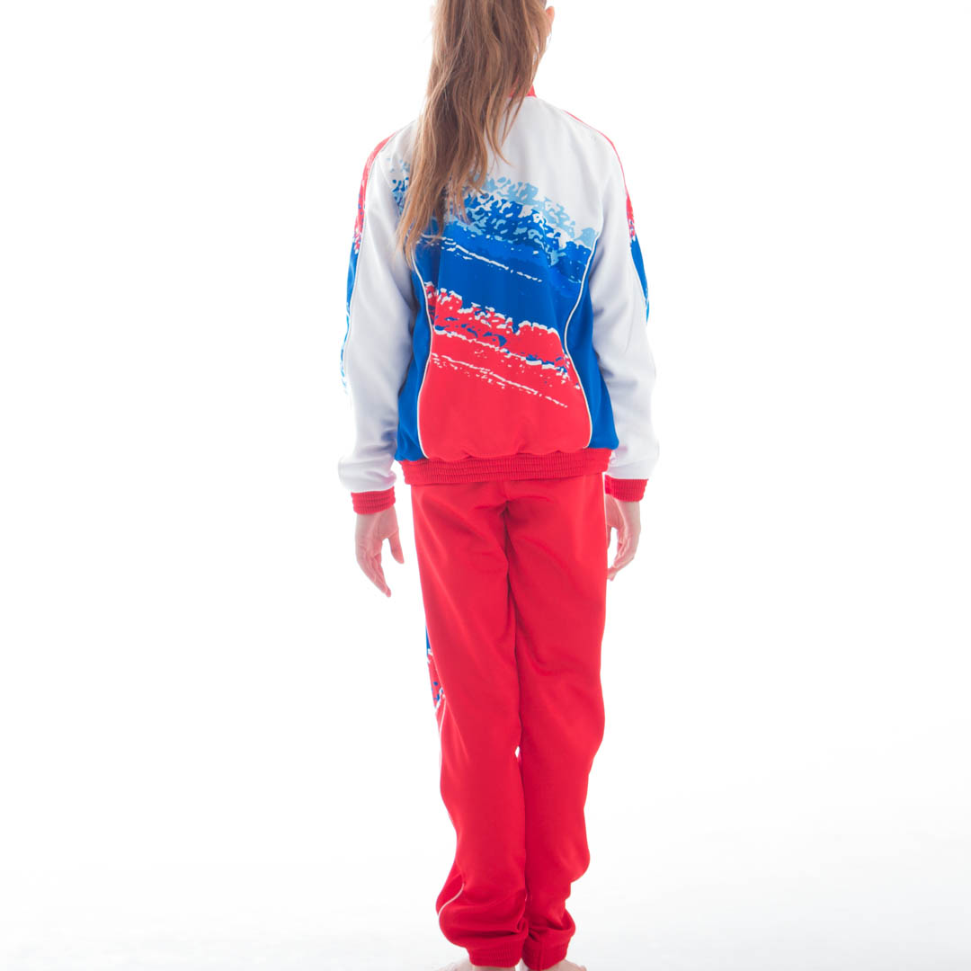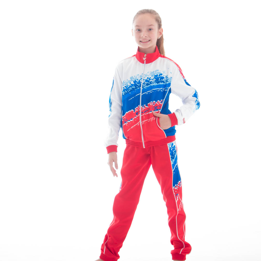 Спортивный костюм для занятий спортом, танцами, аэробикой, также для повседневной носки. Костюм выполнен из мягкого и очень приятного к телу плотного трикотажа — брушет с начесом. Комплект состоит из олимпийки на молнии с длинным рукавом и брюк на манжете. Отличный вариант для тренировок. На полочке олимпийки декорирована вставками из ткани Брушет с начесом (сублимационная печать).