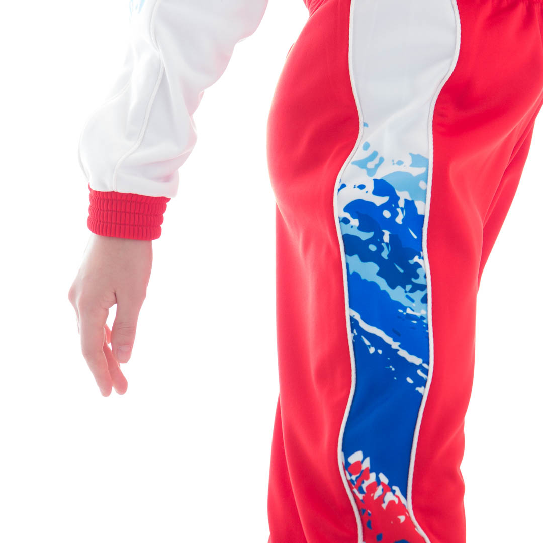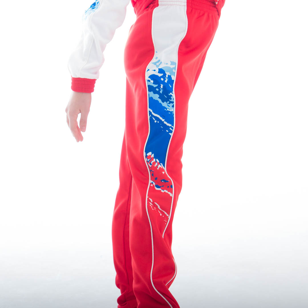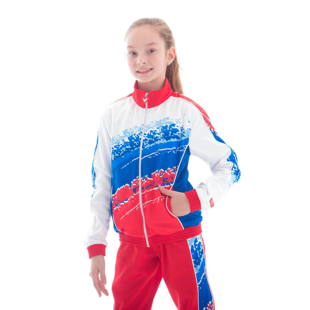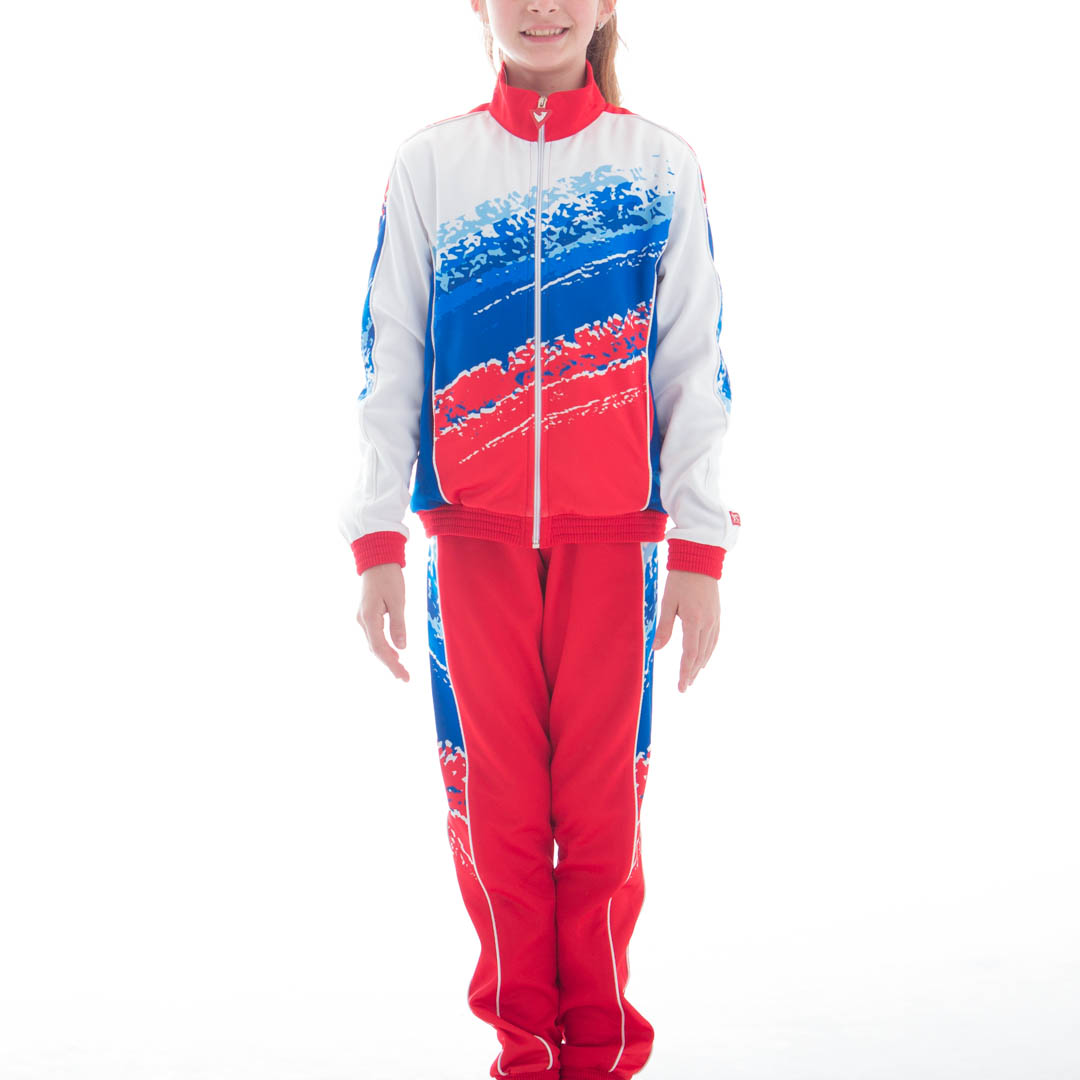 Спортивный костюм для занятий спортом, танцами, аэробикой, также для повседневной носки. Костюм выполнен из мягкого и очень приятного к телу плотного трикотажа — брушет с начесом. Комплект состоит из олимпийки на молнии с длинным рукавом и брюк на манжете. Отличный вариант для тренировок. На полочке олимпийки декорирована вставками из ткани Брушет с начесом (сублимационная печать).